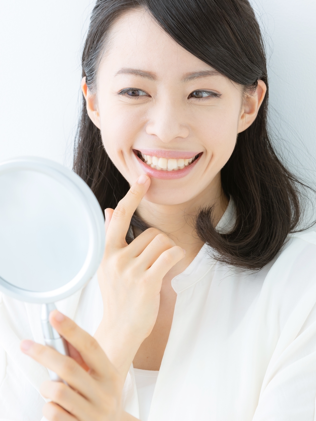 ・歯を移動させた際に、ブラックトライアングル(歯と歯の間の三角形の隙間)や歯肉退縮が起こることがあります。そのような場合、ブラックトライアングル等の改善を目的とした歯の形態や大きさの修正を行うことがあります。